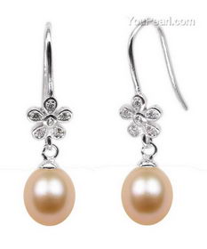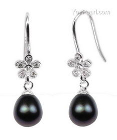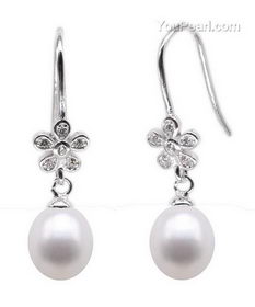 Flower 925 silver freshwater pearl dangle earrings on sale, 7-8mm