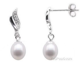 Freshwater pearl drop bridal earrings on sale, sterling silver, 7-8mm