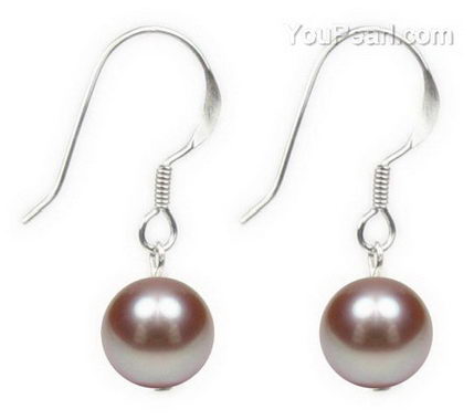 Lavender round freshwater pearl earrings on sale, sterling silver, 8mm