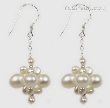 F1470-WE White triangle freshwater pearl cluster discounted earrings online sale