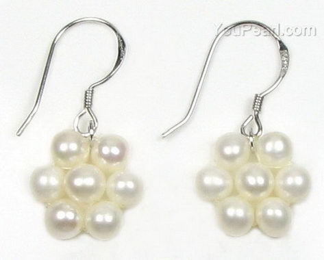 White pearl earrings whole sale online, 4-5mm, sterling silver