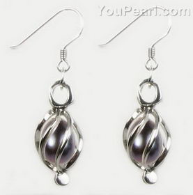 White wish pearl dangle cage earrings wholesale, 925 silver, 7-8mm