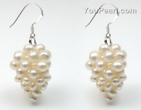 Wholesale fresh water pearl white grape cluster earrings