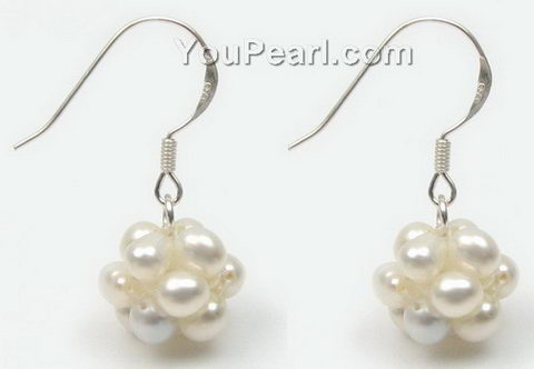 wholesale white ball 925 silver fresh water pearl earrings 4-5mm