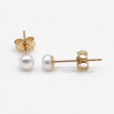 5-6mm white 14K gold filled pearl earrings, freshwater stud wholesale