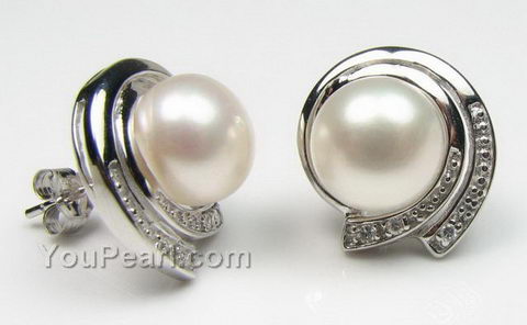 925 silver freshwater white pearl stud earrings on sale, 10-11mm