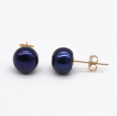 8-9mm black freshwater pearl 14K gold filled stud earrings wholesale