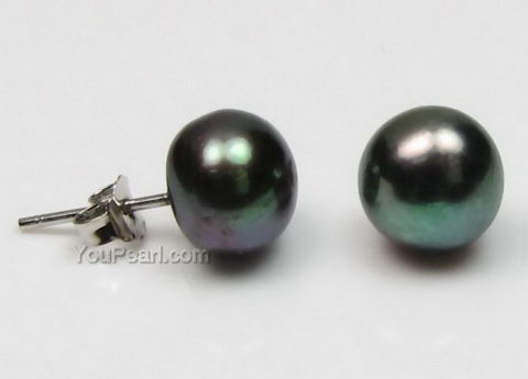 9-10mm black fresh water pearl earring studs buy online, 925 silver
