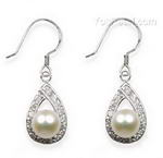 White freshwater pearl drop earrings on sale, sterling silver, 7-8mm