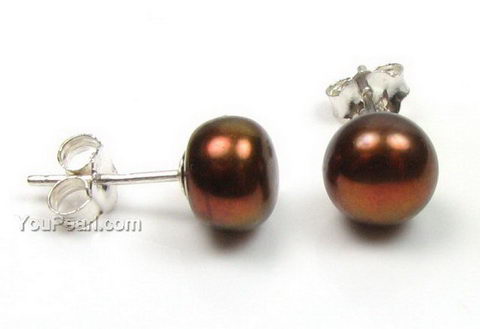 8-9mm black freshwater pearl 14K gold filled stud earrings wholesale