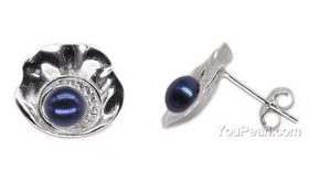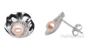 Freshwater pearl on oyster stud earrings, 925 sterling silver, 5-6mm