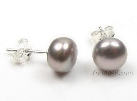 8-9mm gray freshwater pearl earring studs, sterling silver