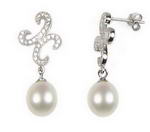 F1016-WE 9-10mm white freshwater pearl earring silver studs wholesale
