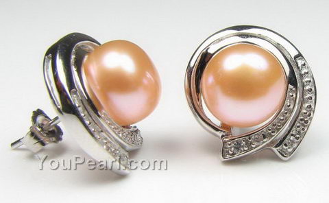 pink/peach fresh water pearl earrings discounted sale, 925 silver, 10-11mm