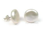 Sterling silver freshwater white coin pearl stud earrings, 12-14mm