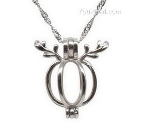 Antler pendant, sterling silver locket cage pendant, antler charm wholesale