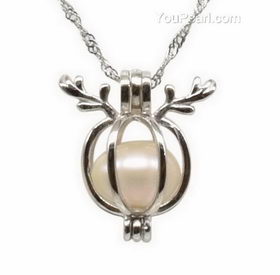 Flower pearl cage pendant, 925 sterling silver wish pearl pendant necklace