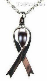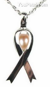 Breast cancer ribbon white freshwater pearl cage pendant, 6-7mm