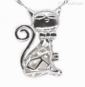 Cat cage pendant, freshwater wish pearl cage charm, sterling 925 silver necklace