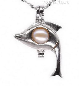 Dolphin cage pendant, wish pearl love cage, 925 silver sterling charm