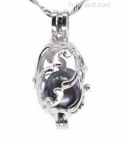 Flower pearl cage pendant, 925 sterling silver wish pearl pendant necklace