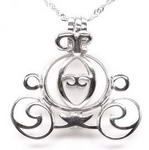 Pumpkin carriage cage pendant, freshwater pearl 925 sterling silver cage pendant