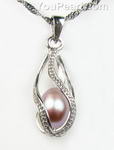 Cultured lavender pearl silver helix cage drop pendant sale, 8-9mm