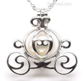 Pumpkin carriage cage pendant, freshwater pearl 925 sterling silver cage pendant