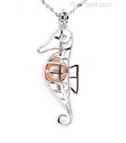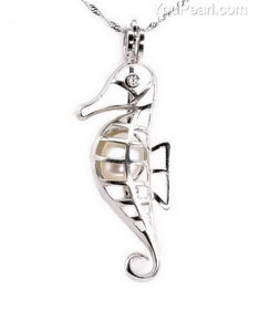Seahorse cage pendant, 925 silver sterling cage, love pearl cage necklace