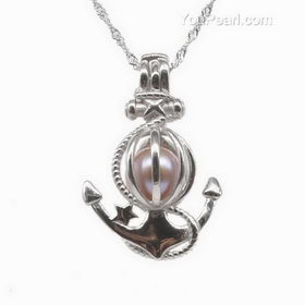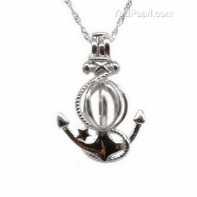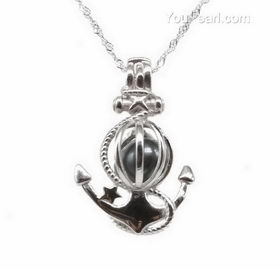 Ship anchor pearl cage pendant, 925 sterling silver pearl charm on sale