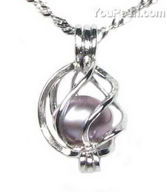 Cultured lavender pearl silver helix cage drop pendant sale, 8-9mm
