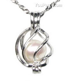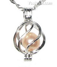 Sterling cage freshwater pink wish pearl pendant wholesale, 7-8mm