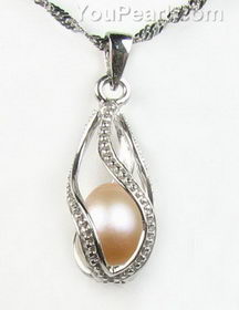Sterling silver helix cage white pearl pendant onsale, 8-9mm