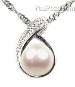 Drop shape sterling silver freshwater pearl pendant on sale, 9-10mm