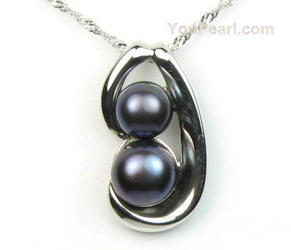Black freshwater pearl pendant, sterling silver, 7-8mm wholesale