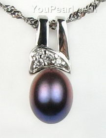 Cultured fresh water black pearl sterling pendant on sale, 7-8mm