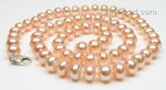 Pink button shape cultured freshwater pearl necklace wholesale, 7-8mm