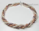 Multi-color twisted teardrop n button freshwater pearl necklace
