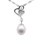 Heart sterling silver pendant, freshwater pearl online sale, 7-8mm