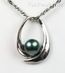 925 silver black freshwater pearl pendant wholesale, 9-10mm