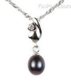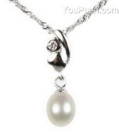 Cultured white pearl flower bud pendant for sale, 925 silver, 7-8mm