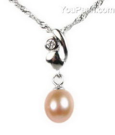 Sterling silver cultured freshwater pearl pendant on sale, 7-8mm