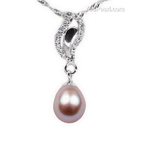 Lavender freshwater sterling silver pearl pendant wholesale, 10-11mm