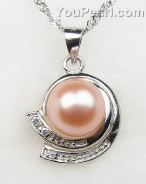 Sterling silver pink freshwater pearl pendant discount sale, 10-11mm