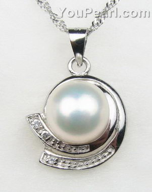 White fresh water pearl pendant bulk wholesale, 925 silver, 10-11mm