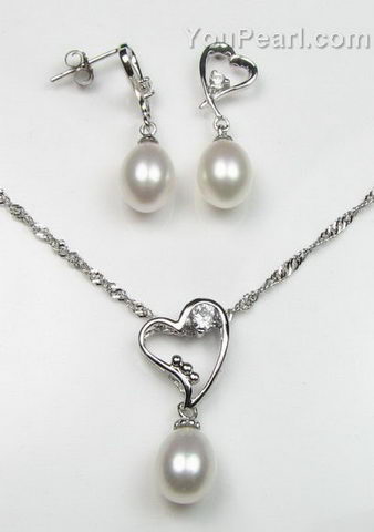 Sterling heart shape freshwater pearl pendant n earrings jewelry set
