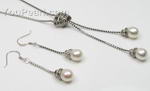 Teardrop white freshwater pearl jewelry sterling silver set online wholesale, 7-8mm