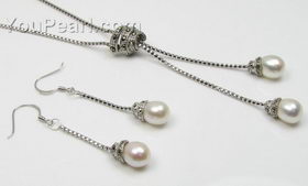 Teardrop white freshwater pearl jewelry sterling silver set online sale, 7-8mm