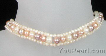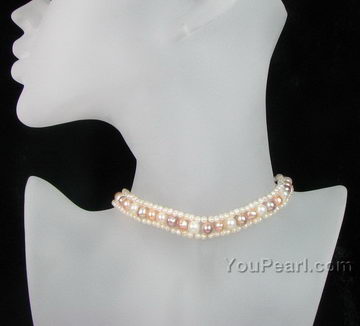 Multi color fresh water pearl choker necklace on sale, 7-8mm