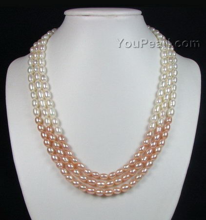Triple strand rice pearl necklace factory direct sale, 5-6mm
